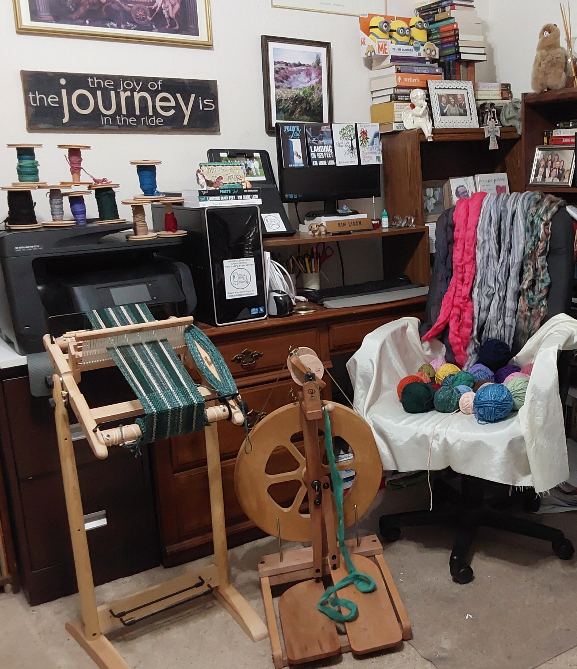 Kim Ligon has been writing stories for most of her life—some on paper and some only in her head. She has lots of source material growing up as the oldest child in a large family in a small town in Wisconsin. Her father was a veterinarian so there were not only lots of children around, but all manner of house pets and farm animals too. Her love of reading comes from her mother who was seldom seen sitting down without a book in her hand. After a demanding career in healthcare information technology, she is now getting to do all the creative things she loves—spinning, knitting, crocheting, creating buildings on her husband’s model railroad and writing her stories to share with you. She lives with her chief encourager and personal romantic hero, her husband of almost forever, in Alabama. Please follow her further adventures at www.spinningromance.com or email her at kimjanine@spinningromance.com Enjoy!