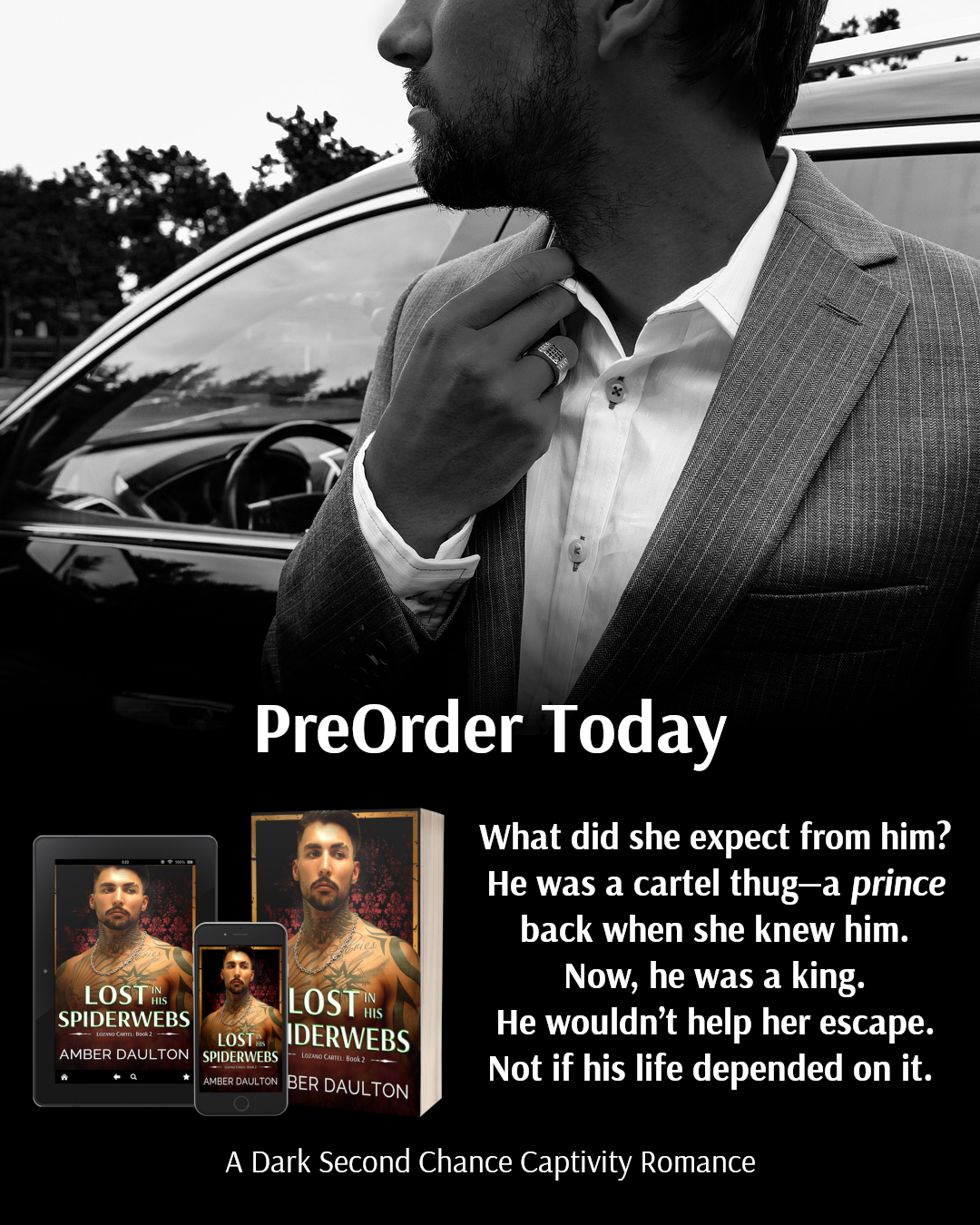 I’m Rubén Lozano, the hero from Amber Daulton’s dark romance novel, Lost in His Spiderwebs. I don’t feel comfortable calling myself “hero.” That doesn’t fit me. Not at all. I’m an anti-hero, a villain with a decent side. If you’re someone I like, I can be a good guy toward you. Nice, funny, generous. If we’re enemies, then watch your back. That’s the only warning you’ll get.