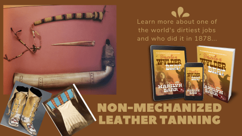 Leather Tanning Nartan Sagebrush has the most revolting job in Wylder, Wyoming Territory but in 1878, his prospects were limited when he chose to join the setters instead of head to the reservation. As an Arapaho Shamanic apprentice, Nartan grew up enjoying his vision quests in the forest and the freedom to follow the bison as they migrated around the US. However, in 1874, this all changed. The US Government placed his tribe on reservations and banned the teaching of all Shamanic practices. Nartan and his brother, Ikshu, claimed a piece of Wylder and struggled their way to a thriving leather tanning business, sheep flock, and homestead. Nartan Sagebrush lacked the chemicals used for commercial leather tanning (invented around 1902), so he relied on cow brains and urine to soften the skins. He’s ahead of his time in that he creates a system of vats and frames so three skins are ready for shipping every day even though only two men are working. Every day six skins, staggered three and three, are rotated through vats of urine. When they are pliable the skins are stretched on frames to dry in the sun. This is the worst smelling part. Three skins are dry each morning and ready for tufting (hair removal) and fleshing. Nartan describes the way his new bride, Olive, fleshes leather in Dance to a Wylder Beat: “The steer’s horn handle of the flesher looks longer than her forearm. I always thought I made the tool too small, but maybe I serendipitously made it for her. Her tiny hand almost fits around it. She kneels before the hide and begins to hammer the center with deft strokes. She has the perfect corner angle to release the fats and flesh from the skin. It rolls into a neat coil using the same gravity that pulls my jaw to the ground.”  Just when the smell of urine threatens to burn off her nose, Nartan introduces her to the next step in tanning. Braining. Nartan doesn’t have the land for a cattle herd, so he barters lamb chops and steaks to the butcher for cow brains. From the brain, he makes the conditioning liquid which changes rawhide to leather. “Olive, to her credit, doesn’t flinch when I scoop the sheep’s brain from its skull and add it to the boiling fat. She even holds the scalp back so I can use two hands. It isn’t until we added the half-pound of soap shavings and cedar oil the smell subsided.” The braining fluid must be massaged into the leather before fluffing which breaking up any hardening parts of the skins. If tanning leather is gross, how does the leather itself smell so good? The secret is in the final step where the leather is smoked. Nartan uses a mixture of spruce and hemlock wood chips in a smoking teepee. Nartan is proud of the finished product and the business he has built around it. However, it will take a special type of woman to appreciate his efforts. Will Olive live in the stench for him? Find out in Dance to a Wylder Beat.